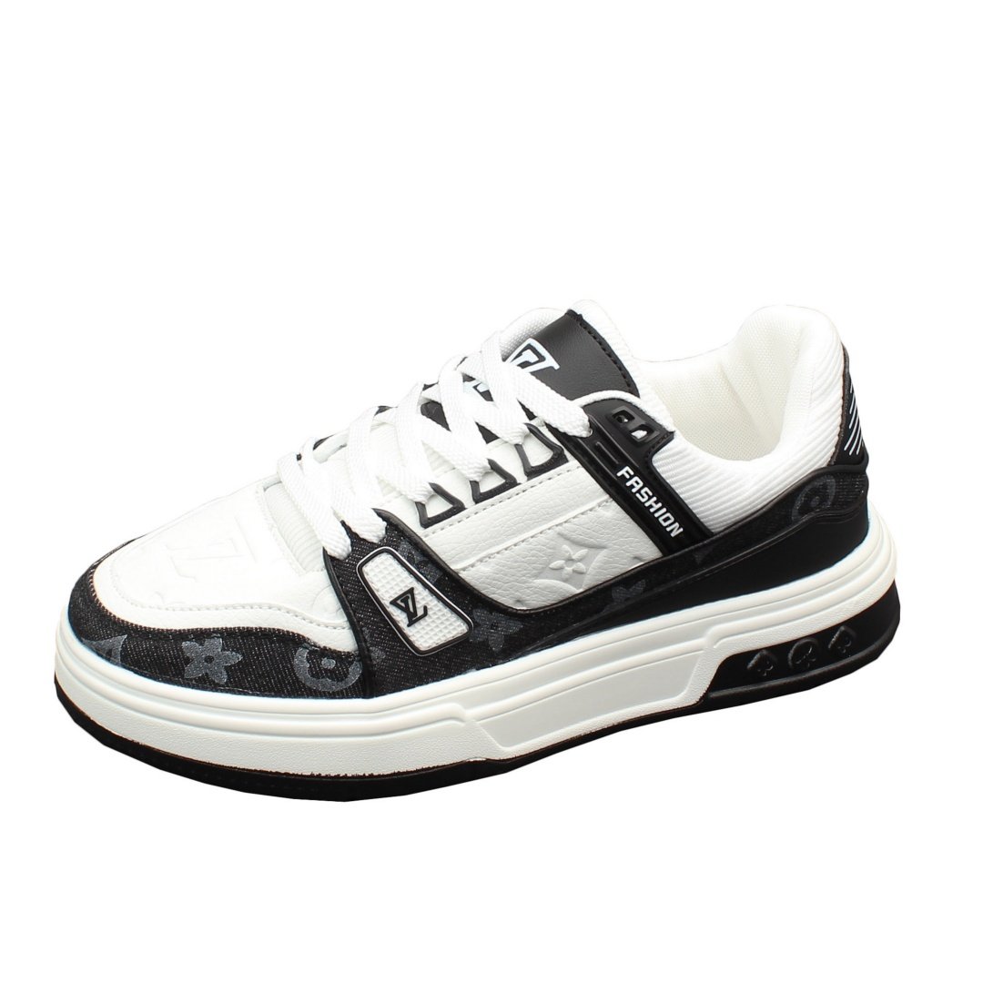 校园风W系列翻毛皮帆布拼接男女国潮滑板鞋 顽刻官方经典 黑白春季