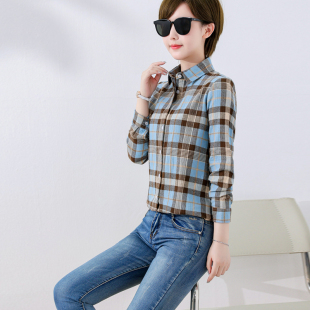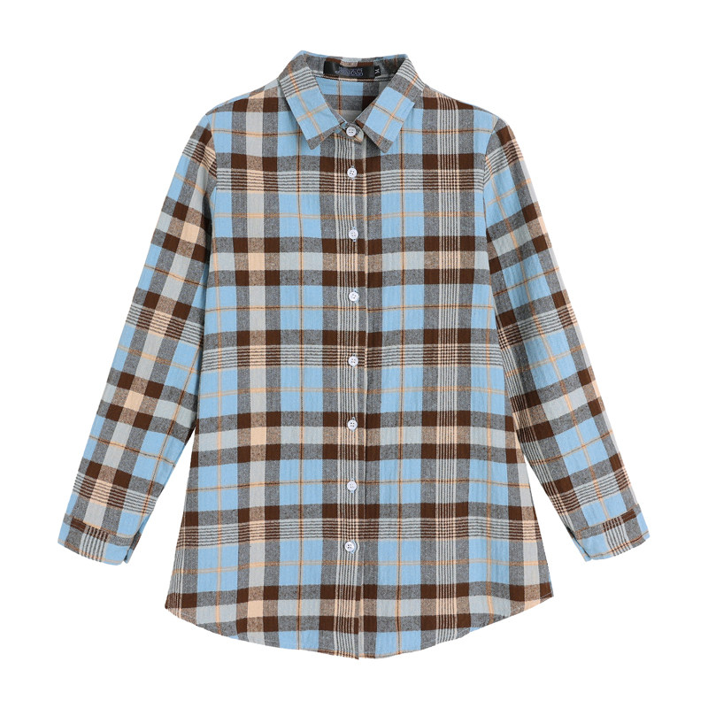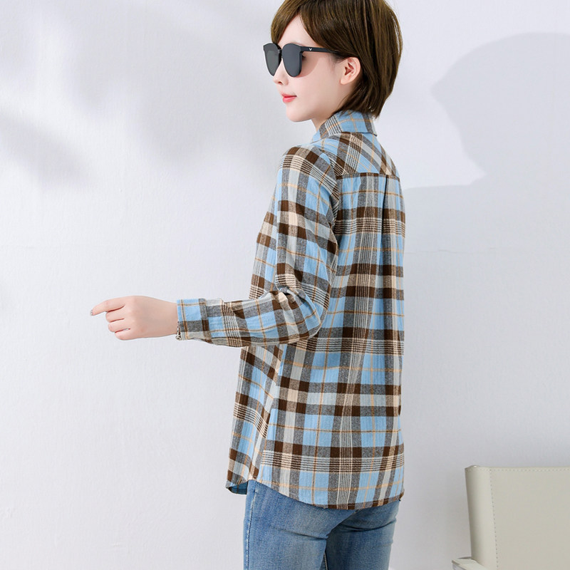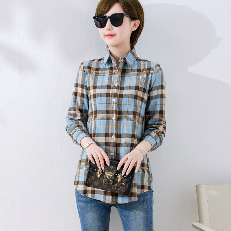 胖妹妹蓝色加厚格子衬衫 独特超好看单穿韩系春秋外套纯棉大码 女装