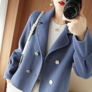 风双面羊毛呢子高端休闲外套 宽松小个子西装 25新款 羊绒大衣女短款