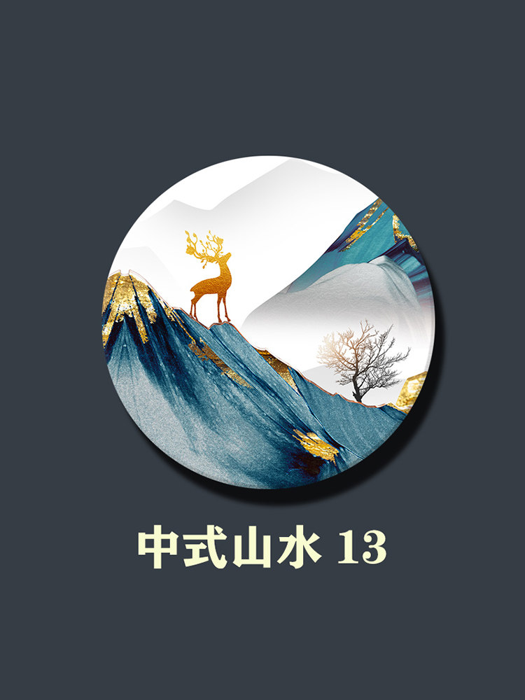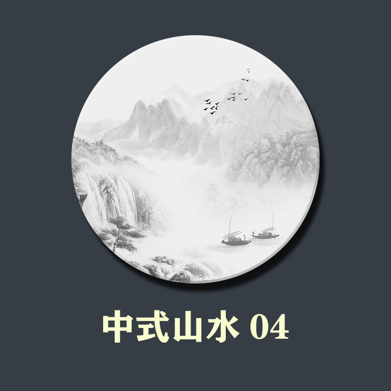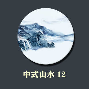 中式 山水双面大理石画定制屏风隔断玄关背景墙圆形石材画加工定做