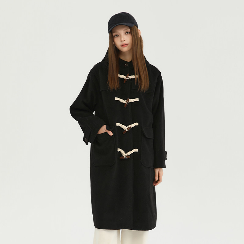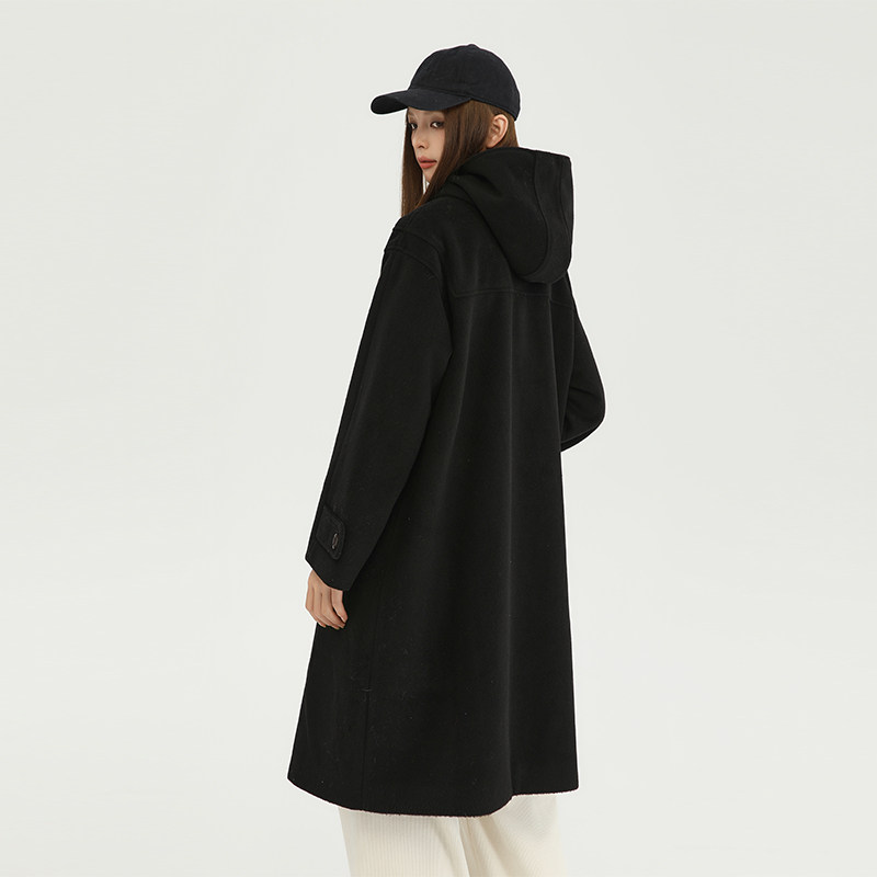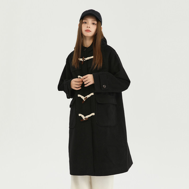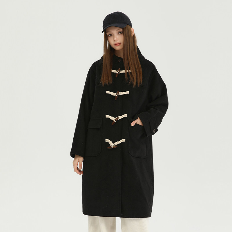 King 黑色牛角扣妮子大衣毛呢外套秋冬保暖加厚外套 Prince长款