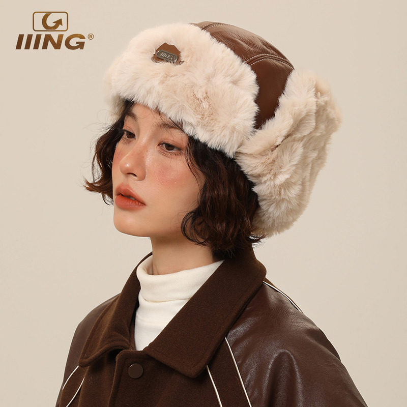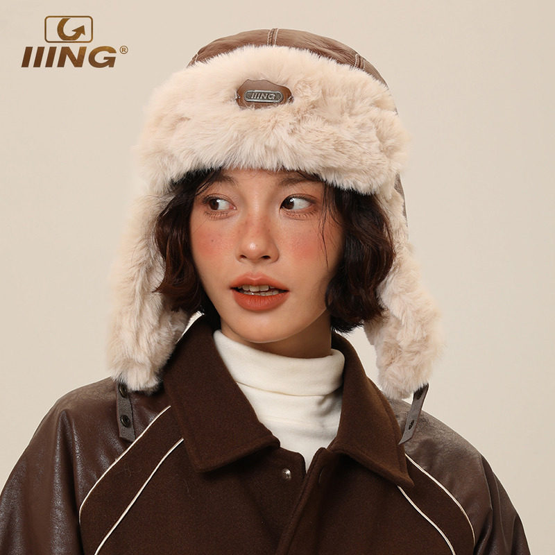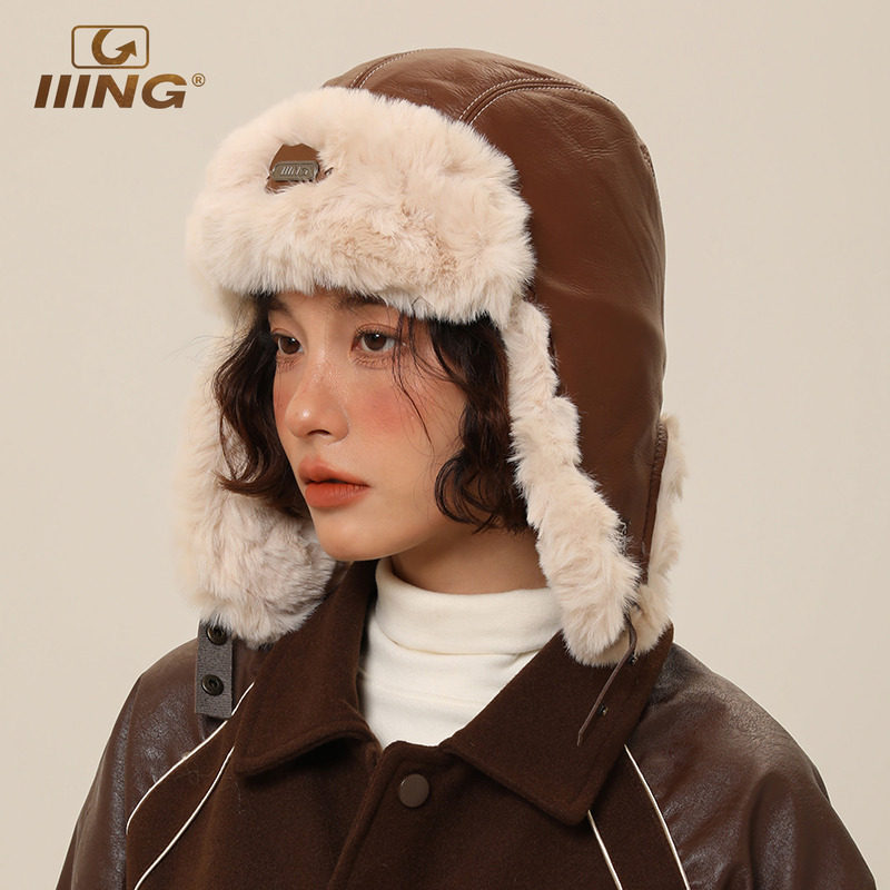 复古皮革飞行员帽子2025秋冬款 男女保暖雷锋帽加绒护耳骑行机车帽