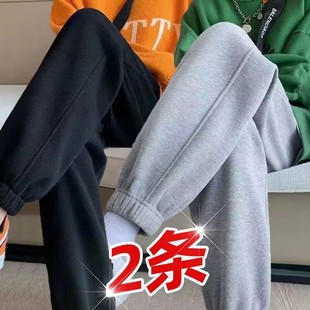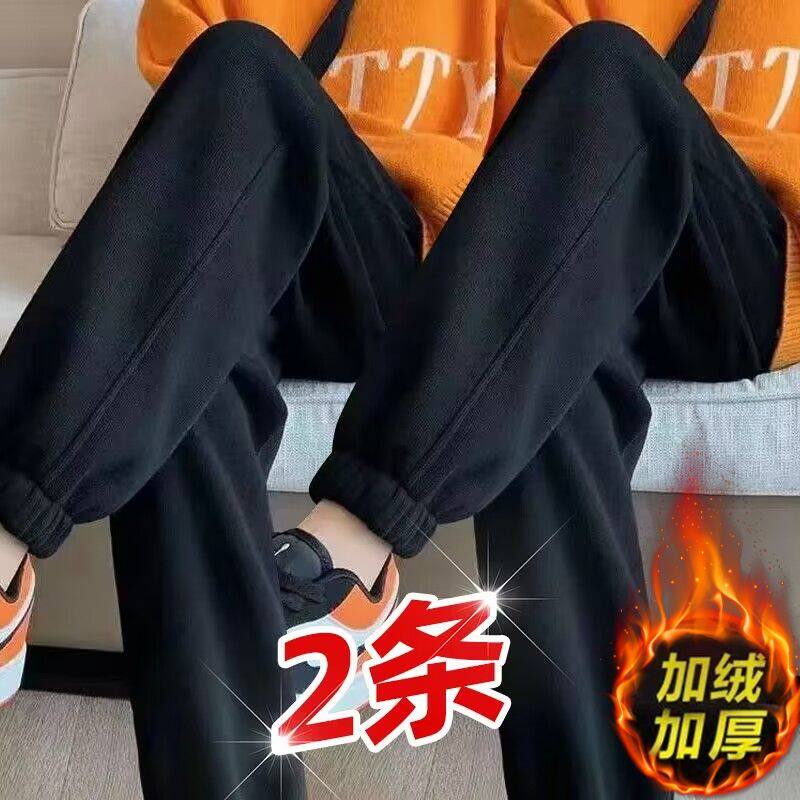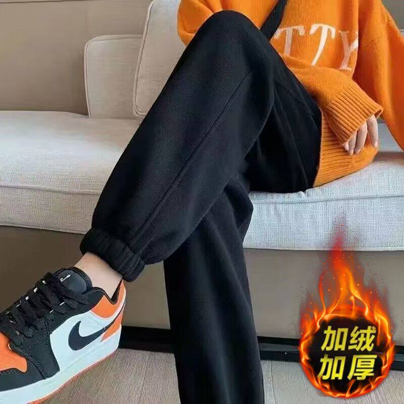 加绒加厚休闲裤 潮流港风运动束脚裤 子女加大码 时尚 宽松卫裤 秋冬季