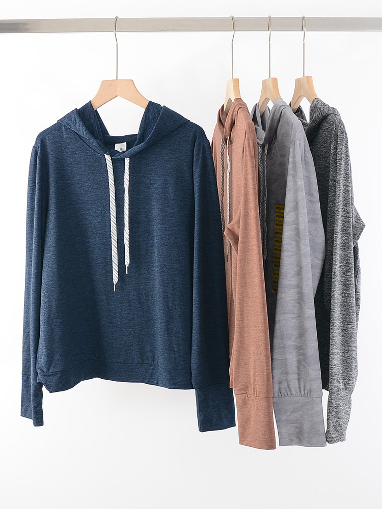 老美单 女士软糯舒适速干透气健身跑步运动瑜伽连帽套头卫衣 秋装