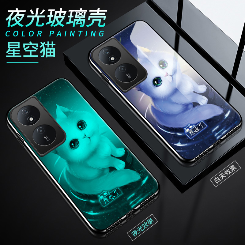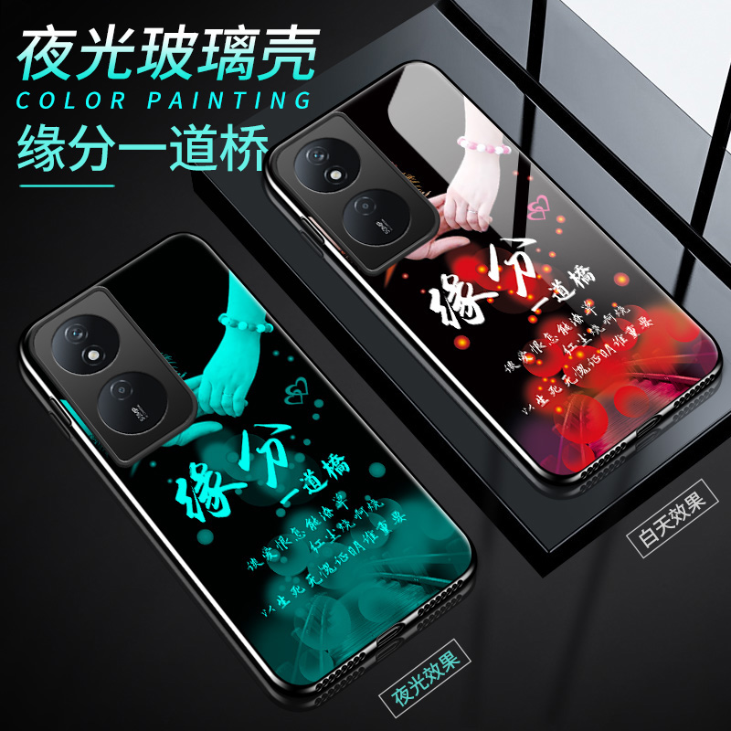 夜光玻璃适用荣耀畅玩50Plus手机壳CLK AN00防摔保护套5G全包镜头硅胶软边硬壳华为男女Honor镜面文字薄创意