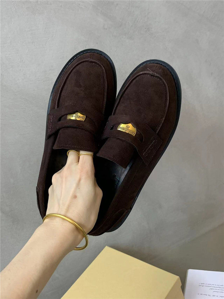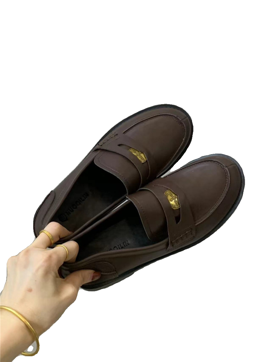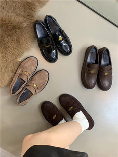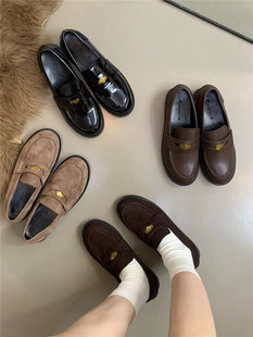 复古英伦风小金币一脚蹬小皮鞋 秋冬款 豆豆鞋 高级感加绒棕色乐福鞋