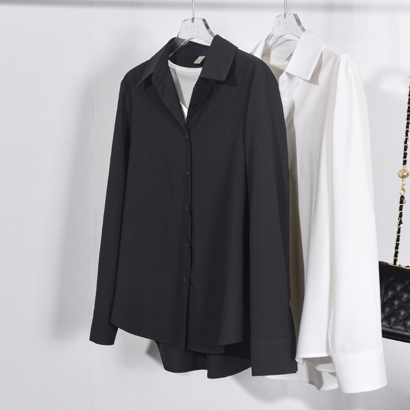 免烫抗皱黑衬衫 叠穿OL通勤白色衬衣内搭弹力棉上衣 女2026春秋新款
