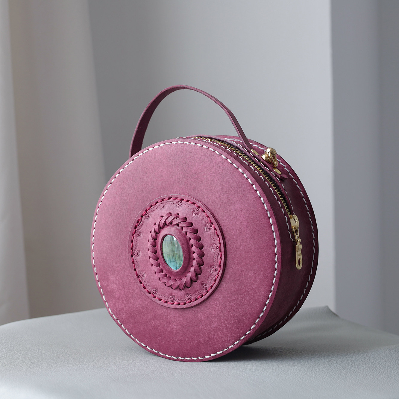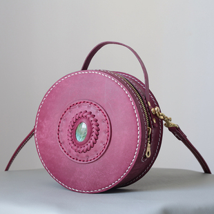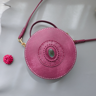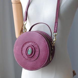 紫色 手提包 天使之眼 |复古小圆包纯手工真皮女挎包