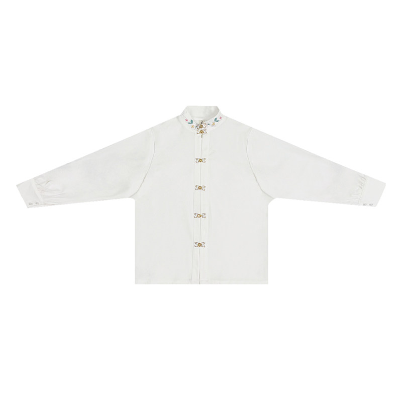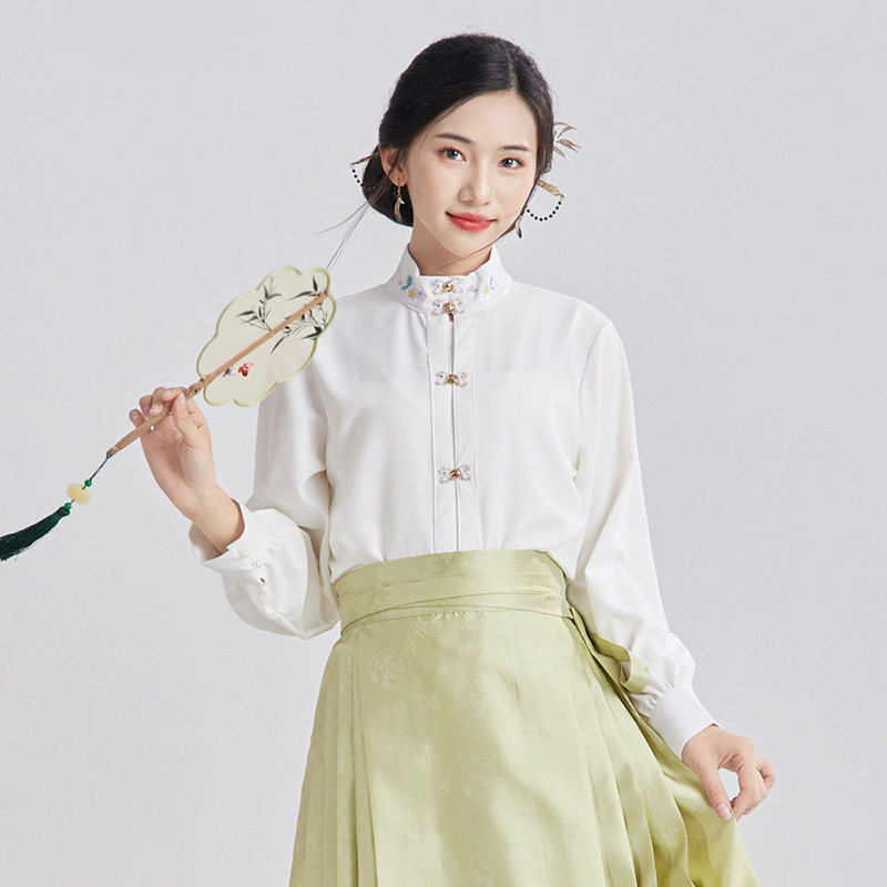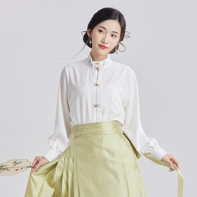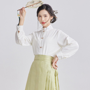 对襟盘扣衬衫 马面裙立领国风上衣夏季 古风汉服衬衣女 搭配 新中式