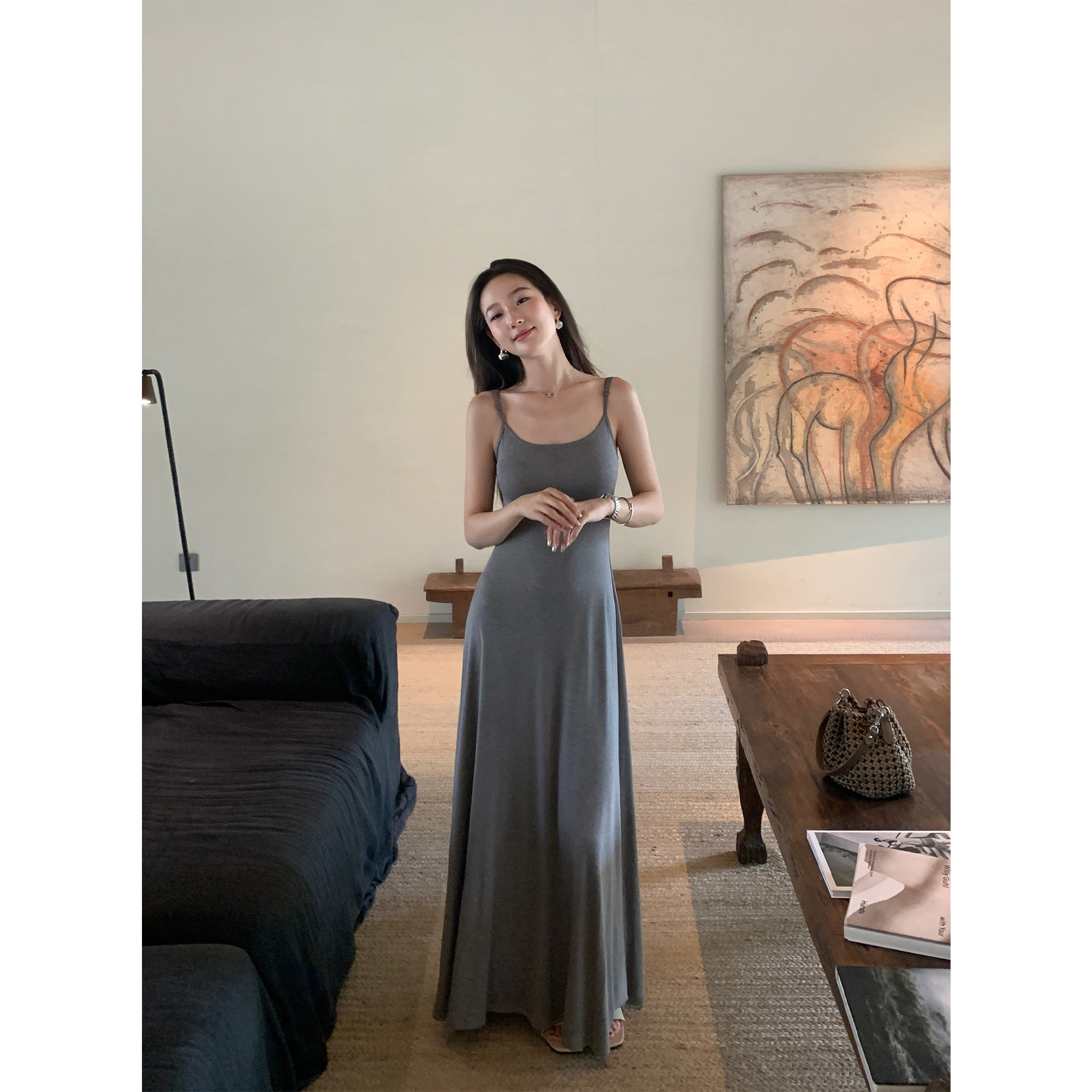 显瘦打底背心长裙 针织连衣裙女气质吊带裙修身 pusumede修身 无袖