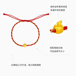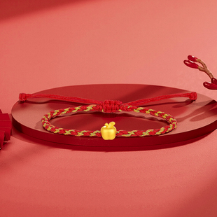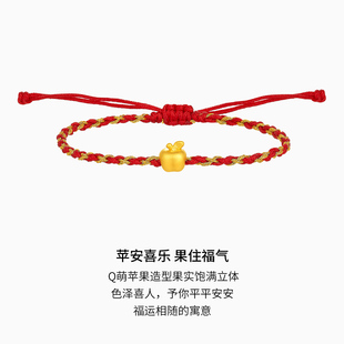 潮宏基国色平安果黄金手链足金手绳手饰5D硬金苹果红绳新年礼物