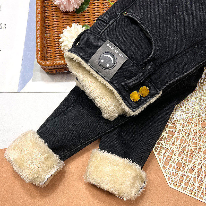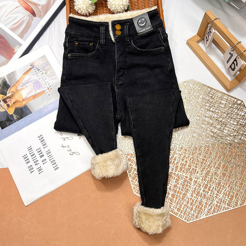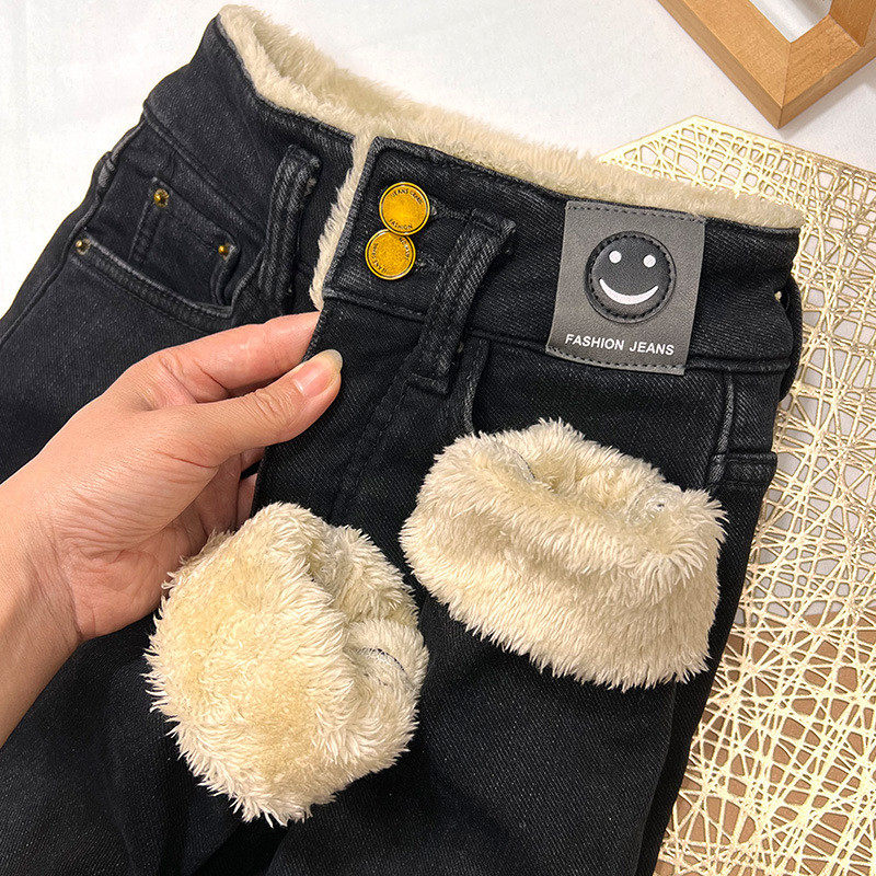 羊羔毛显瘦小脚靴裤 冬季 子 外穿高腰加绒牛仔裤 特厚东北加厚棉裤