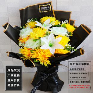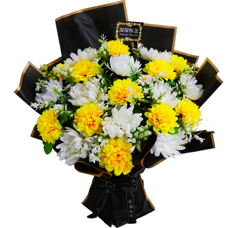 假花仿真花束单支塑料雏菊玫瑰绢布干花花坛栅栏小把插花田园装 饰