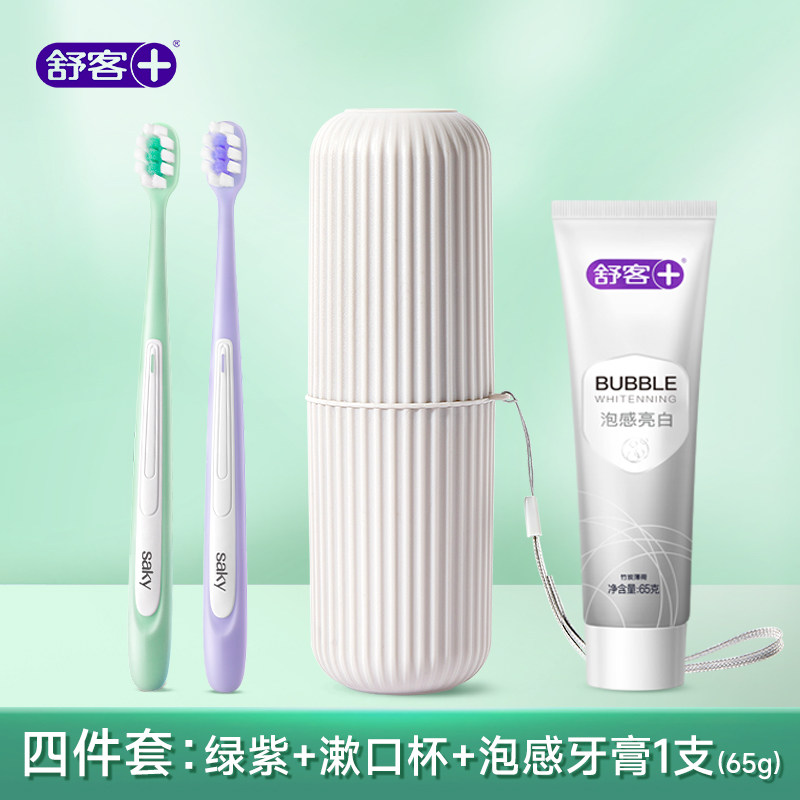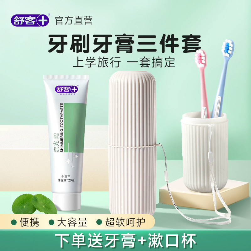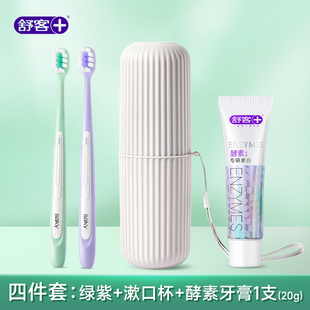 舒客牙刷牙膏牙杯三件套非一次性旅游旅行用品旅行洗漱套装 便携装