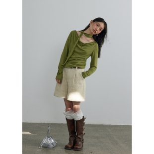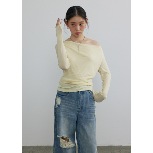 春季 t恤女休闲软糯弹力打底衫 时髦感荡领飘带纯色长袖 BLUEerror