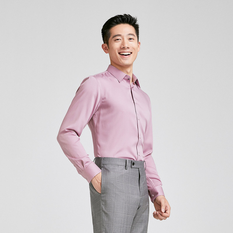 免烫垂感弹力高级感商务无痕V领白色衬衣潮 新中式 立领衬衫 男长袖