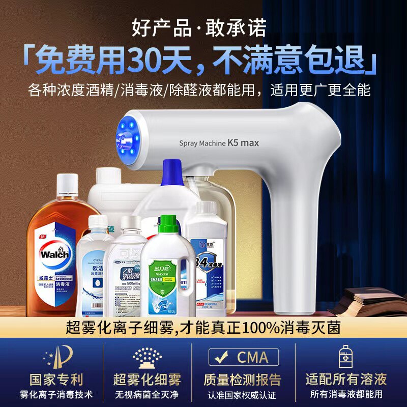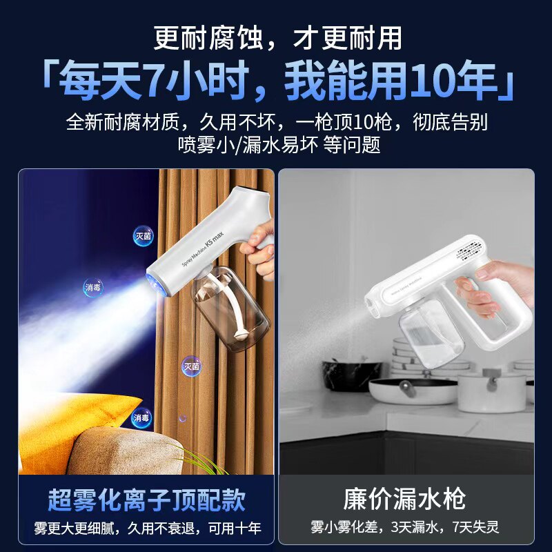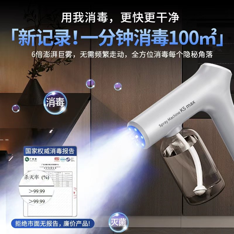 酒精消毒喷雾枪蓝光杀菌次氯酸家用空气纳米紫外线防疫电动雾化器