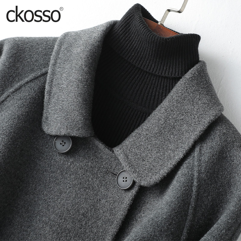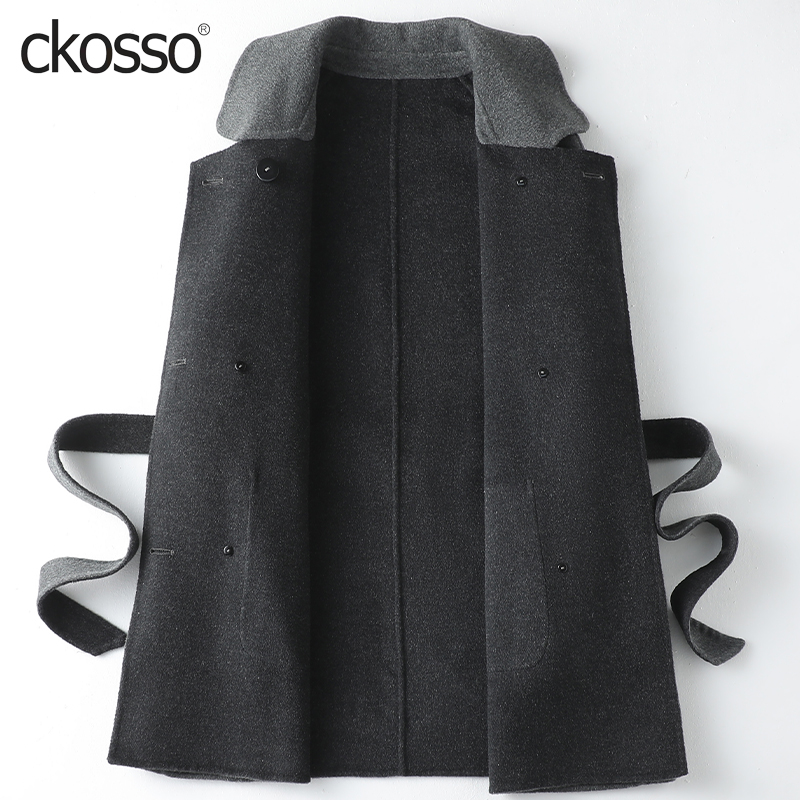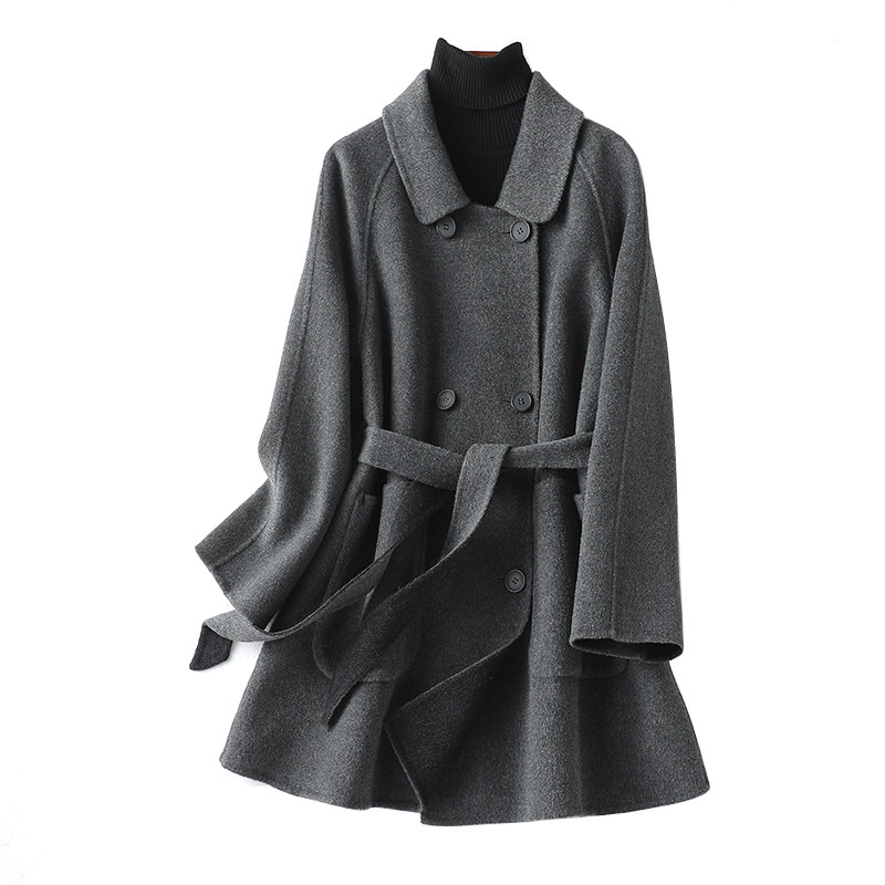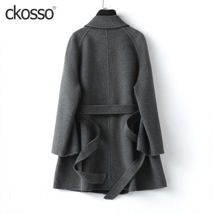 时尚 韩版 毛呢外套 系带高级灰小个子春秋新款 双面羊毛大衣女中长款
