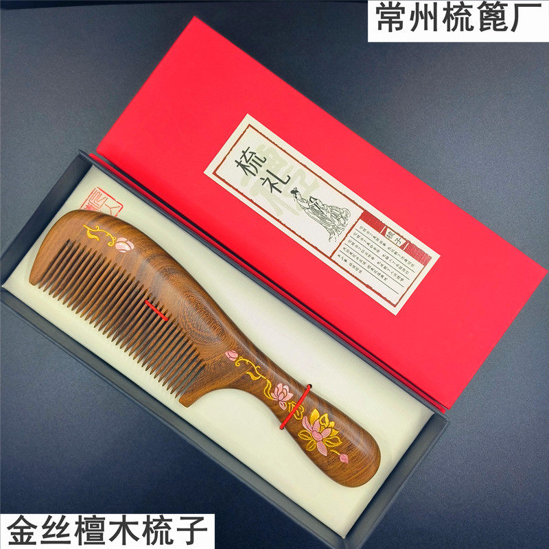 常州梳篦厂整木梳金丝檀木梳篦按摩梳护发梳防静电包包梳免费刻字