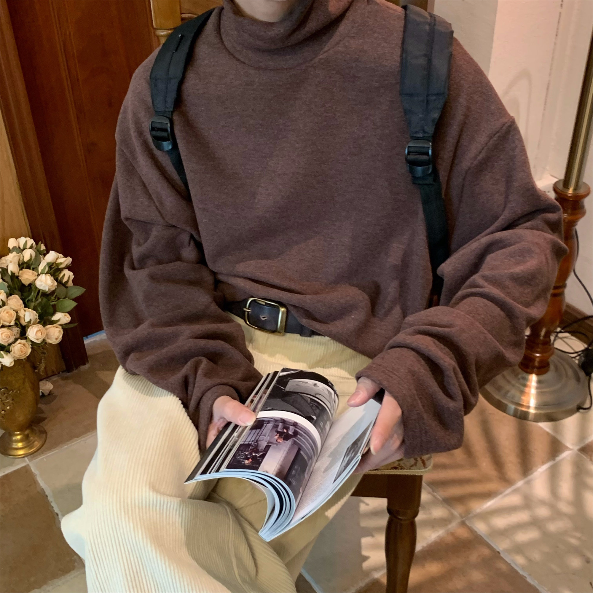 C2自制 德绒加厚打底高领T恤宽松百搭加绒内搭情侣卫衣 秋冬韩版