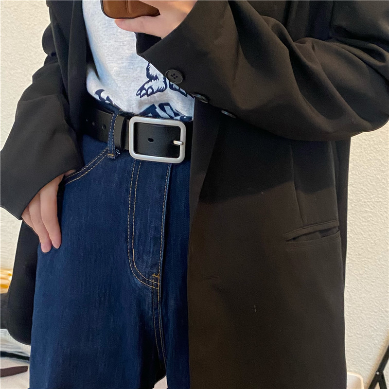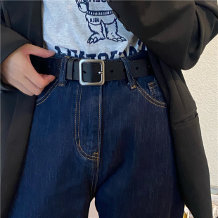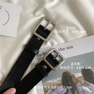 高级风简约方头皮带女宽真皮百搭银色扣新款 纯色牛皮腰带潮男黑色