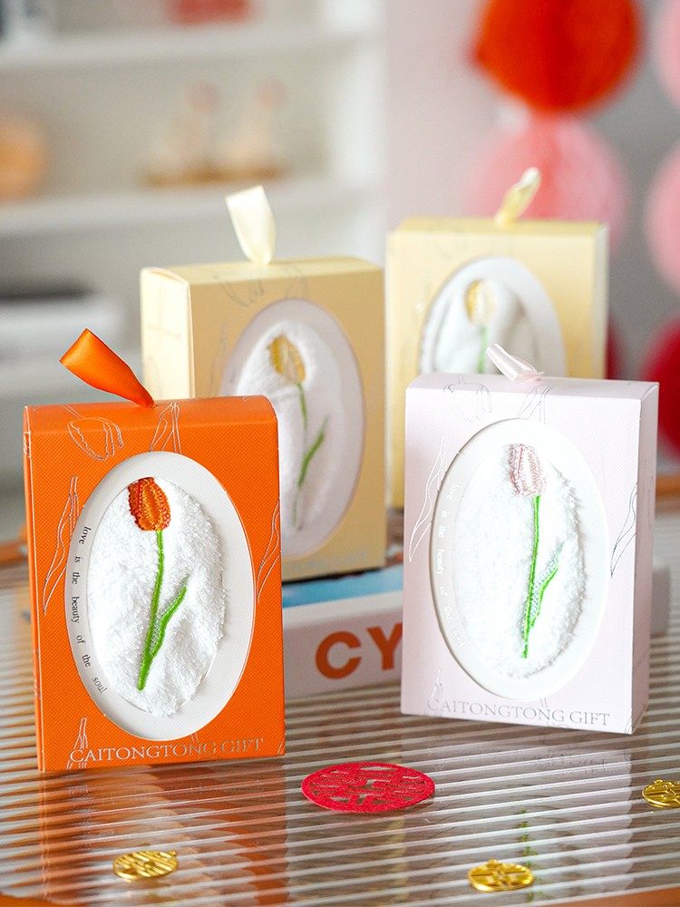 郁金香刺绣面巾珊瑚绒婚礼礼盒伴手礼毛巾礼品擦手巾回礼婚庆用品