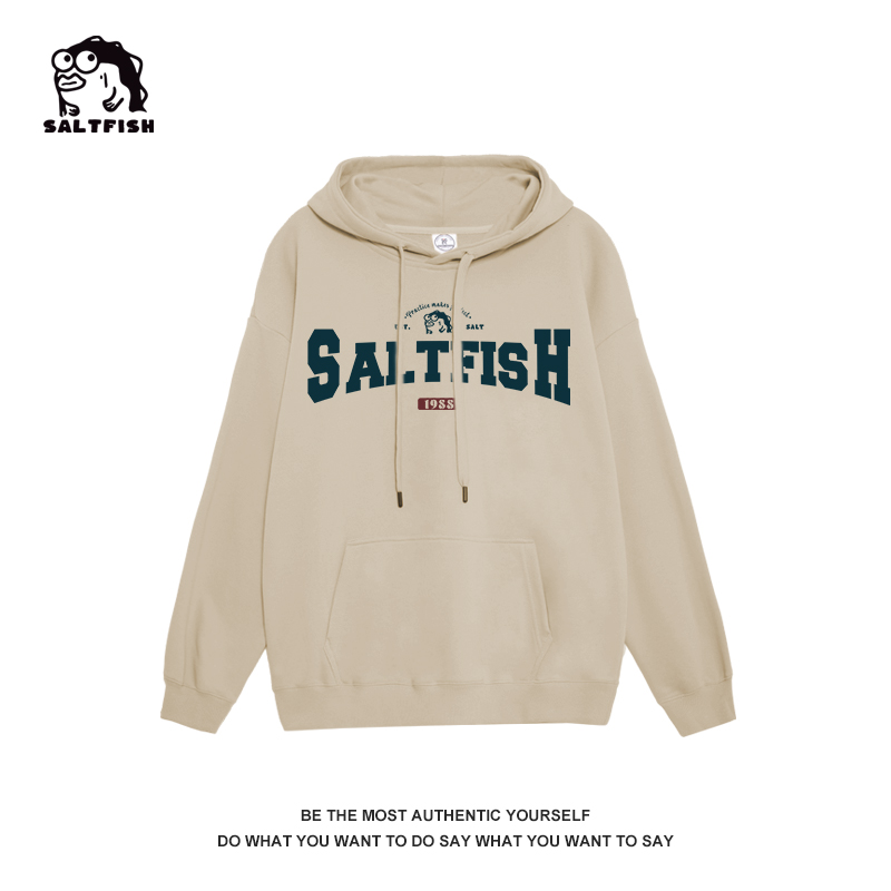 复古蓝色卫衣男女秋冬加绒情侣装 SALT FISH咸鱼1988字母印花美式