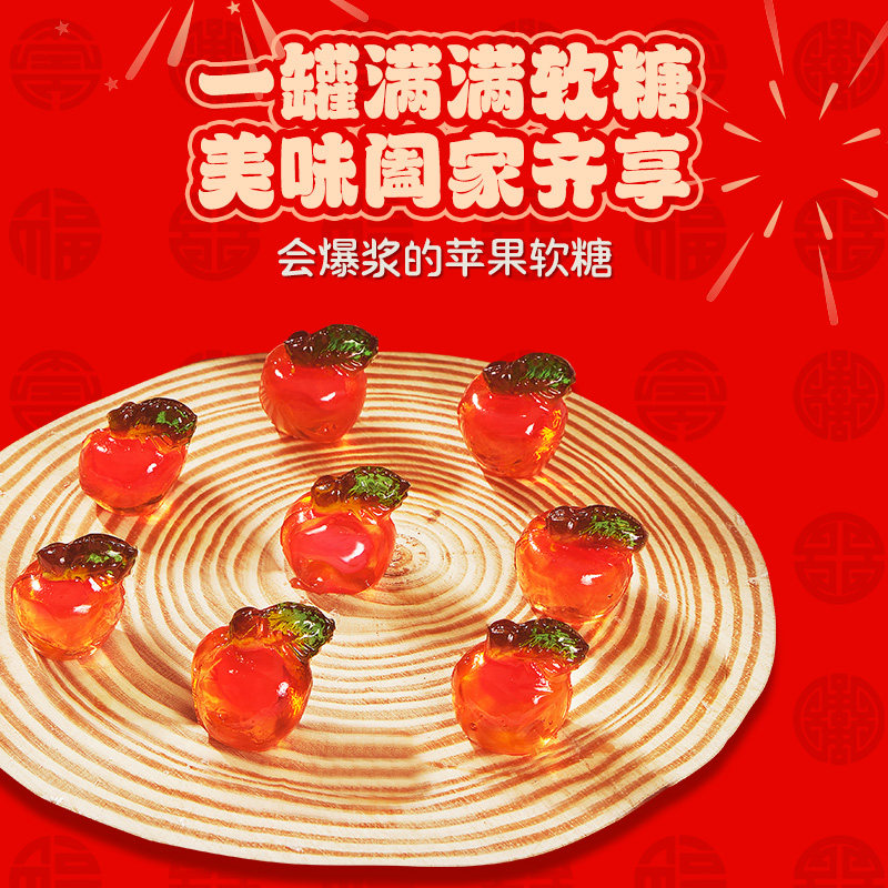 Amos阿麦斯4d水果爆汁爆浆软糖苹果味糖果节日礼品礼盒圣诞年货节