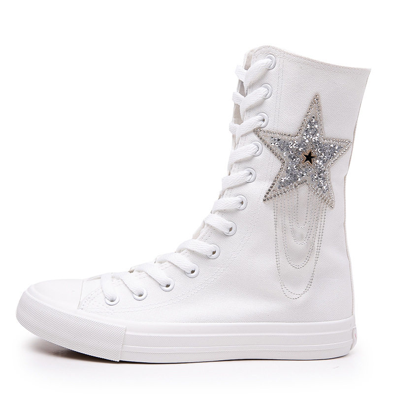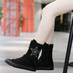 中帮时尚 韩版 帆布鞋 中筒女靴前系带侧拉链镶钻休闲女鞋 好潮流 新款