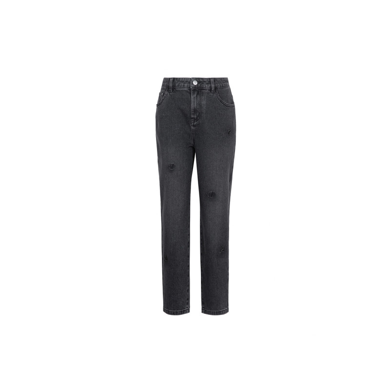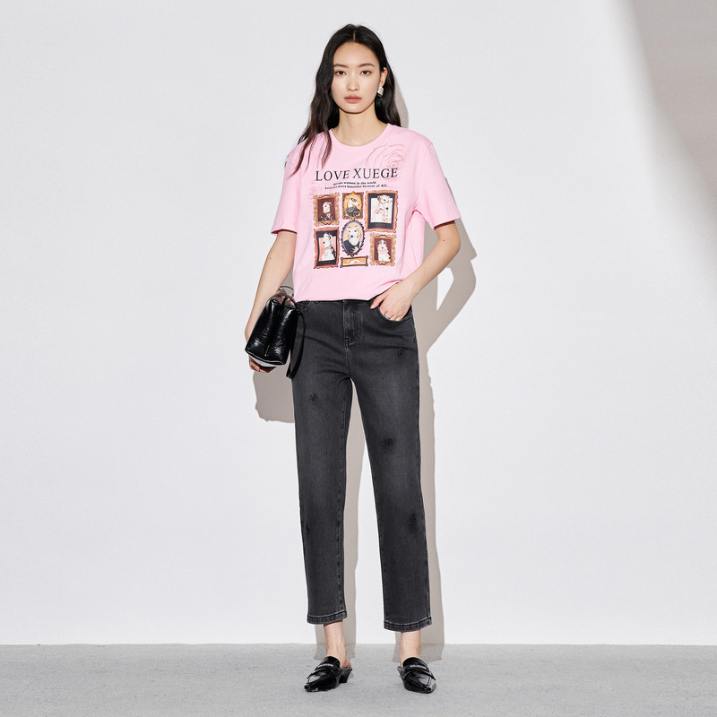 秋季 时尚 新款 修身 女 直筒长裤 雪歌XJ302019A290黑色弹力牛仔裤