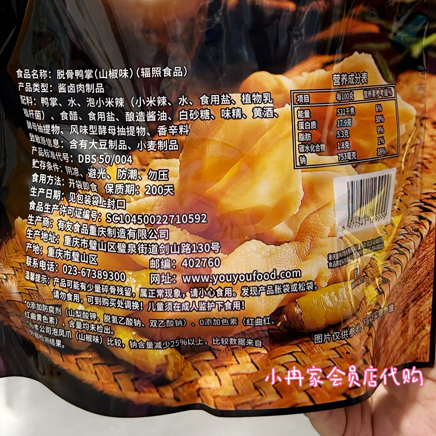 山姆会员店代购 有友脱骨鸭掌山椒味休闲零食卤味鸭肉零食川式