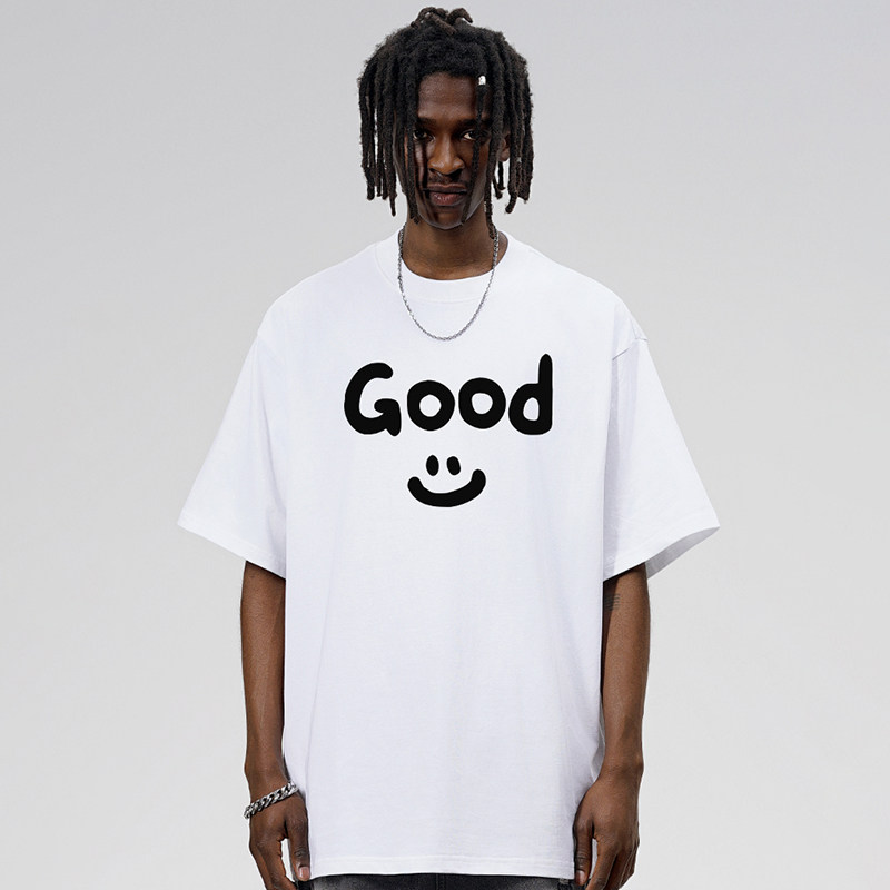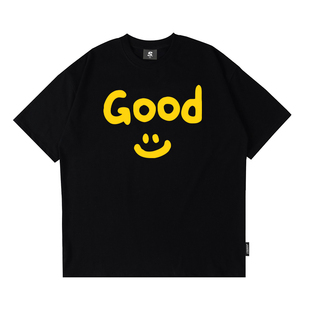 夏季 STA潮牌简易卡通笑脸短袖 T恤男生国潮情侣纯棉宽松女体恤衫