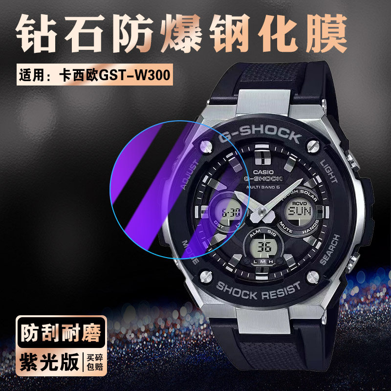 适用CASIO卡西欧GST W300G手表贴膜钢铁之心GSTW310潮流腕表W330L屏幕保护膜S130护眼太阳能电波男表120软膜