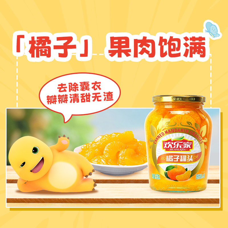 休闲零食品 雪梨杨梅椰果橘子黄桃罐头 欢乐家 水果罐头900g大瓶装