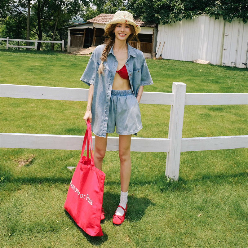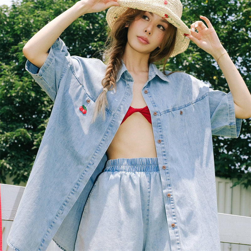 松弛感樱桃牛仔短裤 短裤 女款 外穿套装 初春2026新款 戚砚笛同款