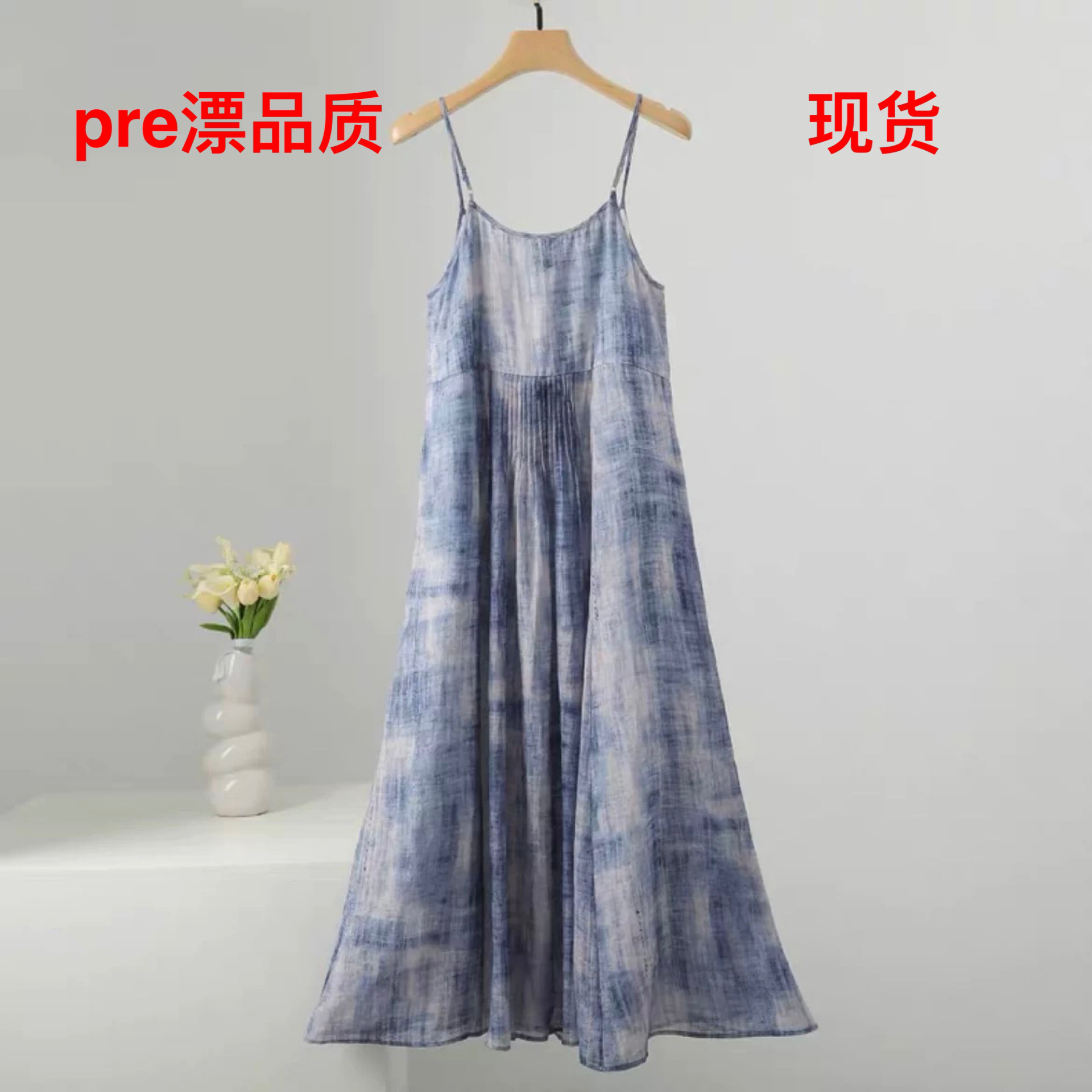 衬衫 100支超细苎麻印花飘逸吊带连衣裙长裙 海浪裙 pre漂浮