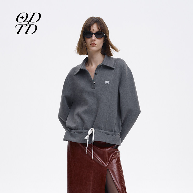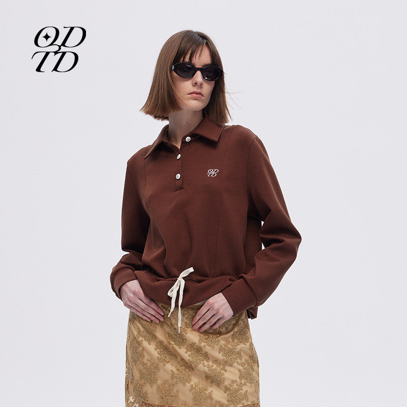 25新款 设计师品牌 logo刺绣polo系带上衣小众POLO女 ODTD