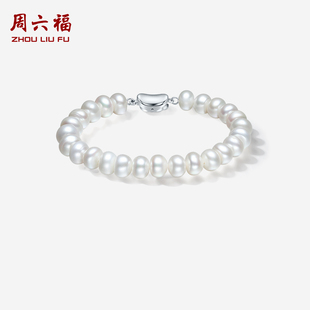 周六福S925银珍珠手链优雅时尚 扁圆珠固定链长新年礼物送妈妈