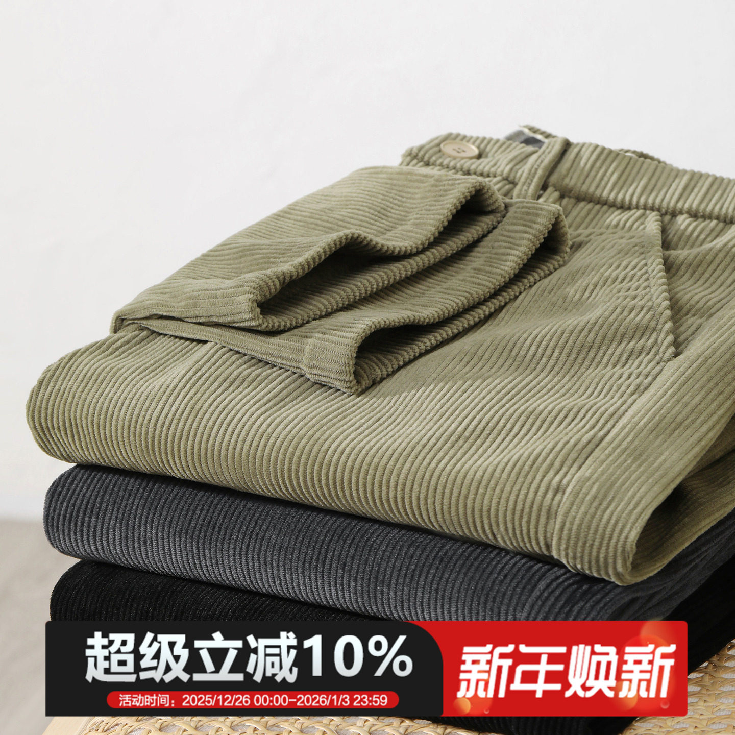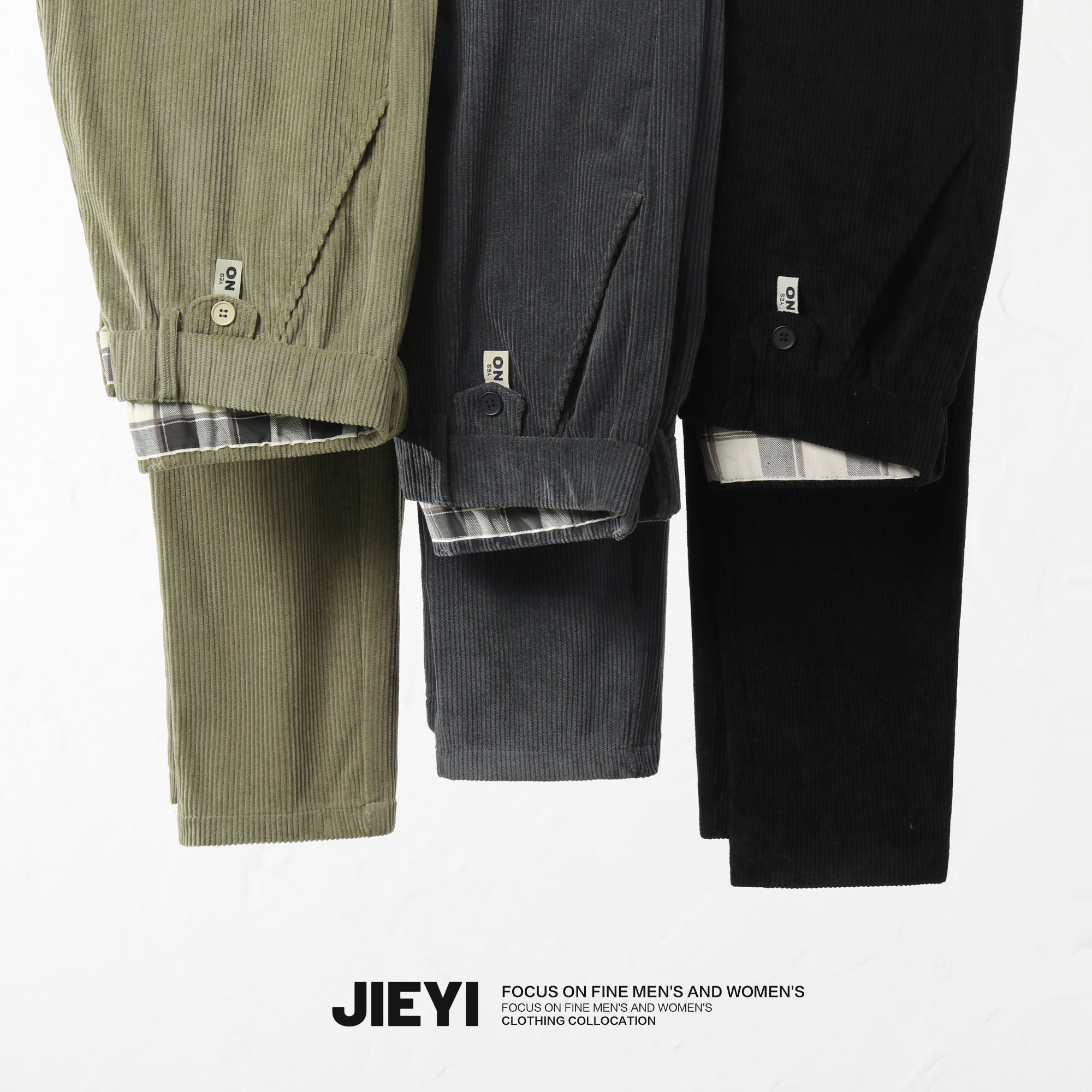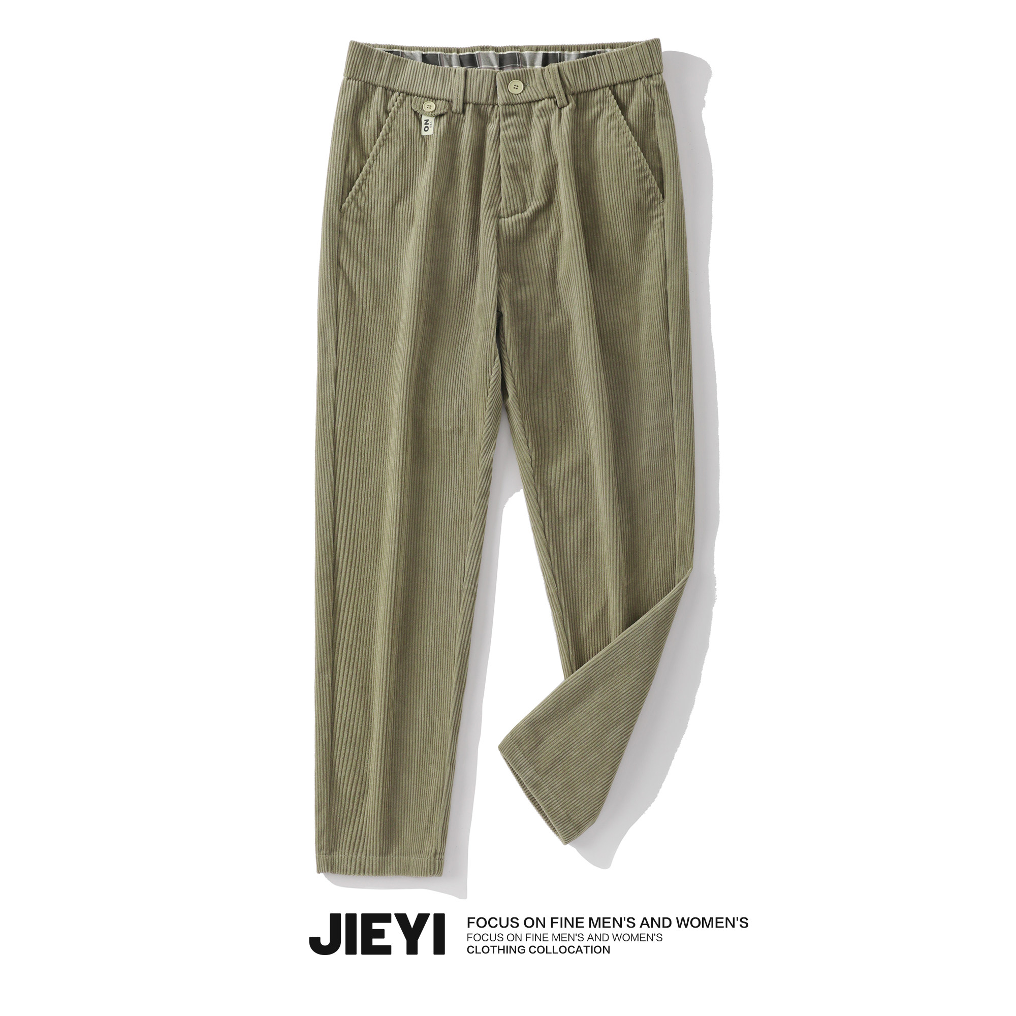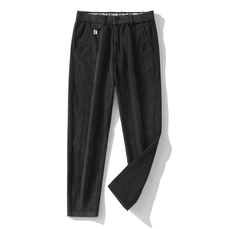 灯芯绒秋冬保暖休闲裤 复古纯色标签裤 厚款 锥形裤 子 简约男士 JIEYI