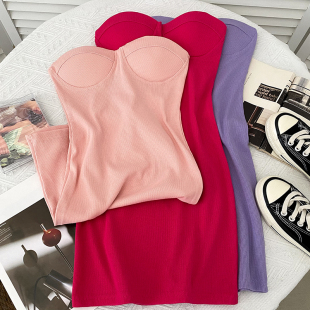 欧美ins性感百搭抹胸修身 显瘦连衣裙短裙包臀裙打底裙女带胸垫