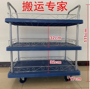 3层平板车手推车移动工具车围栏小推车双层工厂仓库搬运车拉货