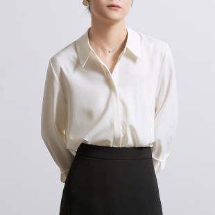 新款 CHICBLISS 秋季 女长袖 通勤暗门襟垂感面试衬衣女 白色缎面衬衫