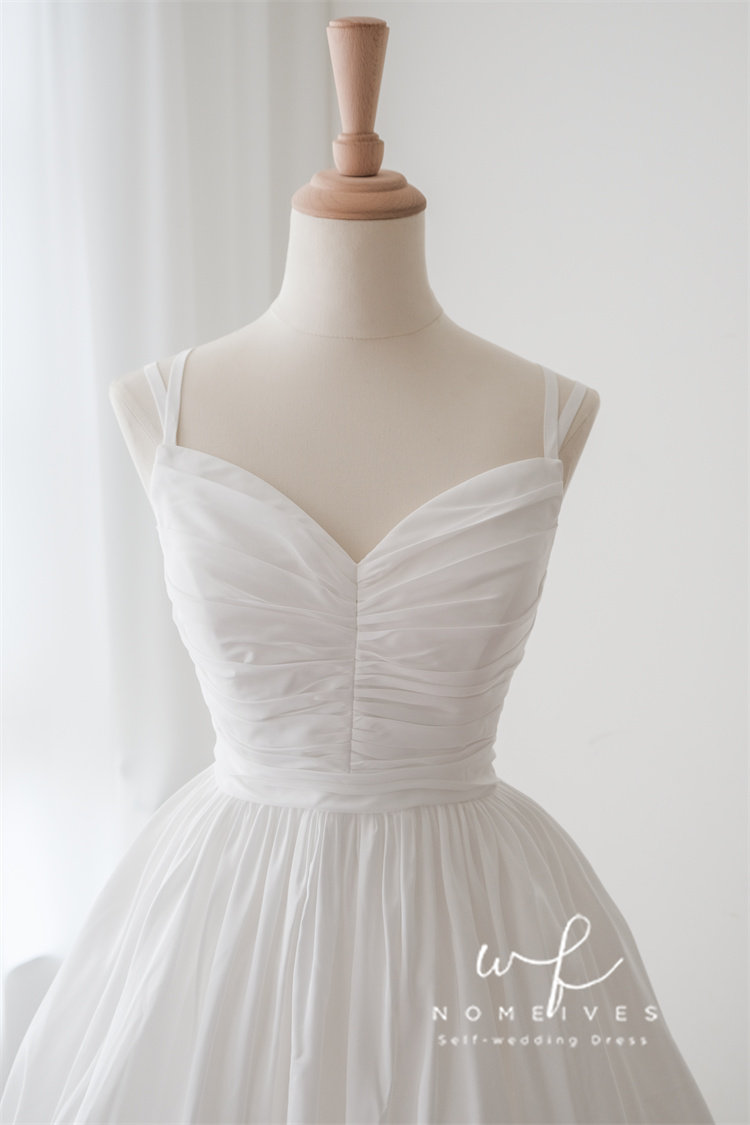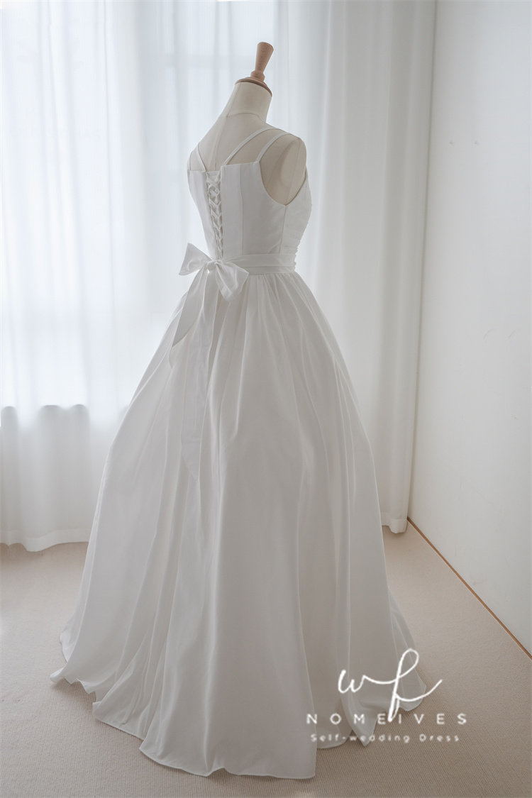 吊带V领小众新娘出门纱迎宾轻婚纱 高腰无袖 2025新款 塔夫绸法式