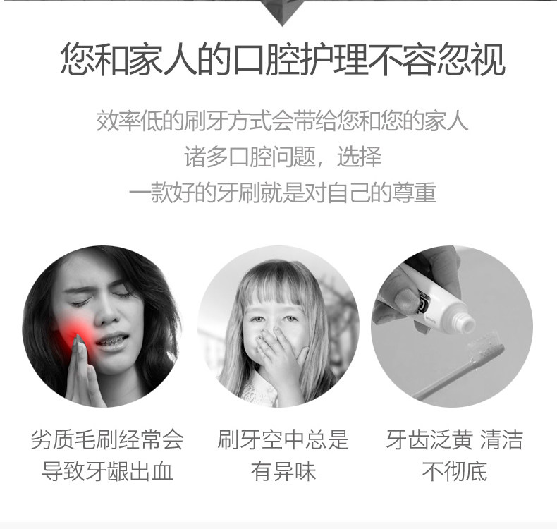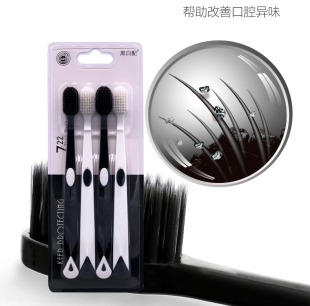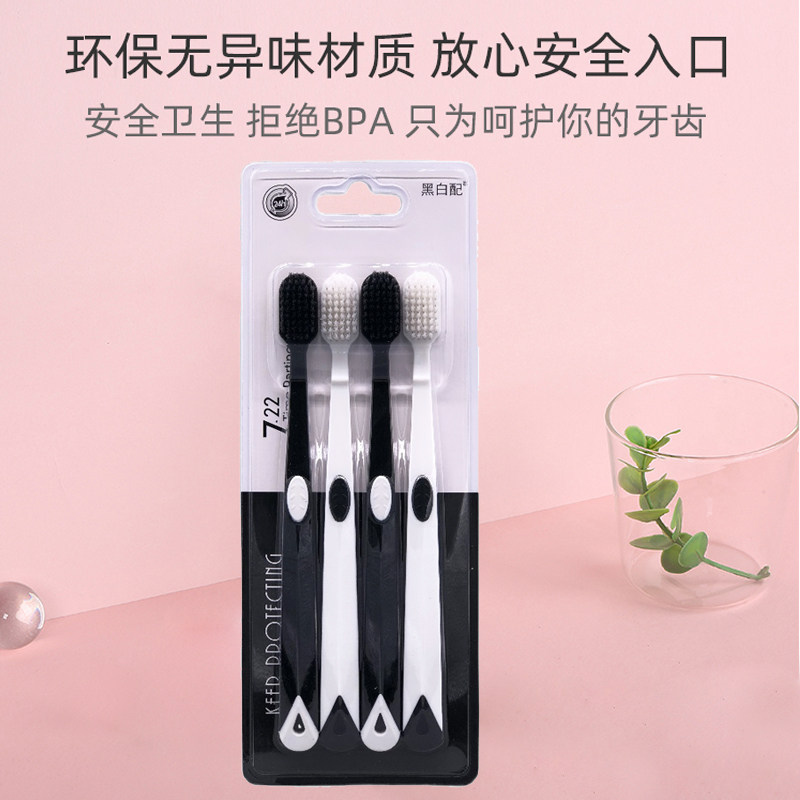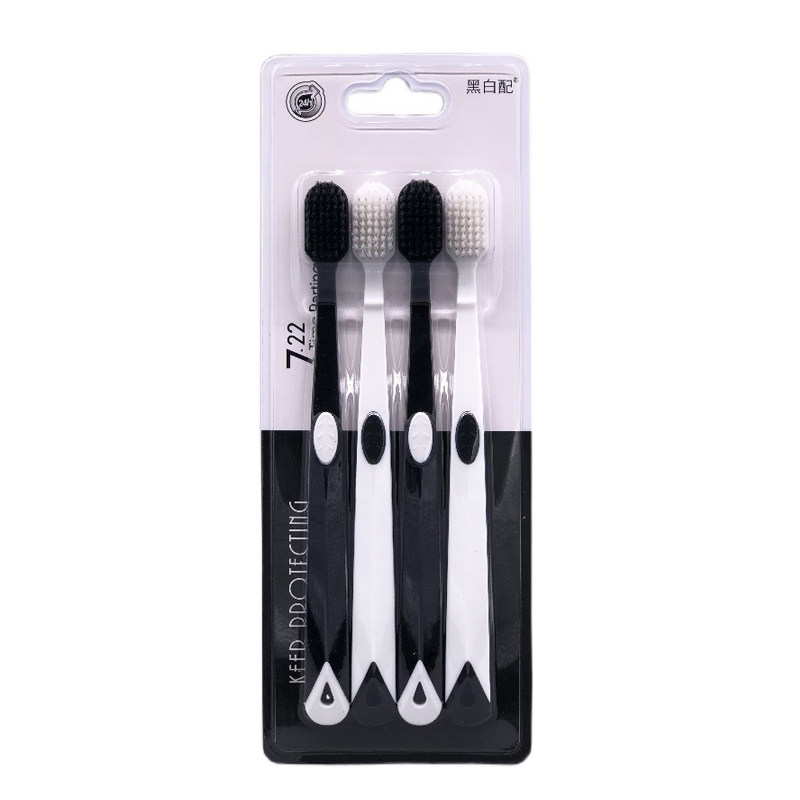 皓客黑白配4支家庭装 细丝抑菌炭软毛护龈清洁口腔男女成人用牙刷