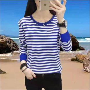 印字班服工服春秋 蓝白条T恤男女情侣装 为人民服务海魂衫 纯棉长袖