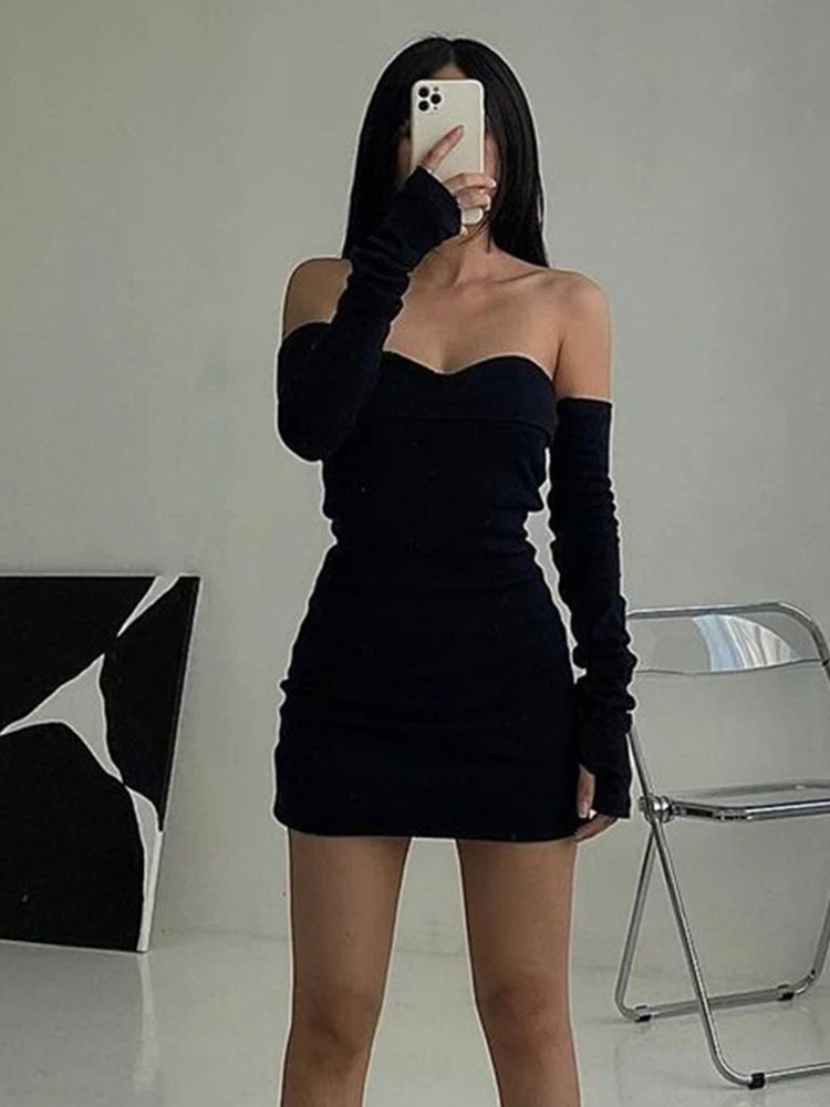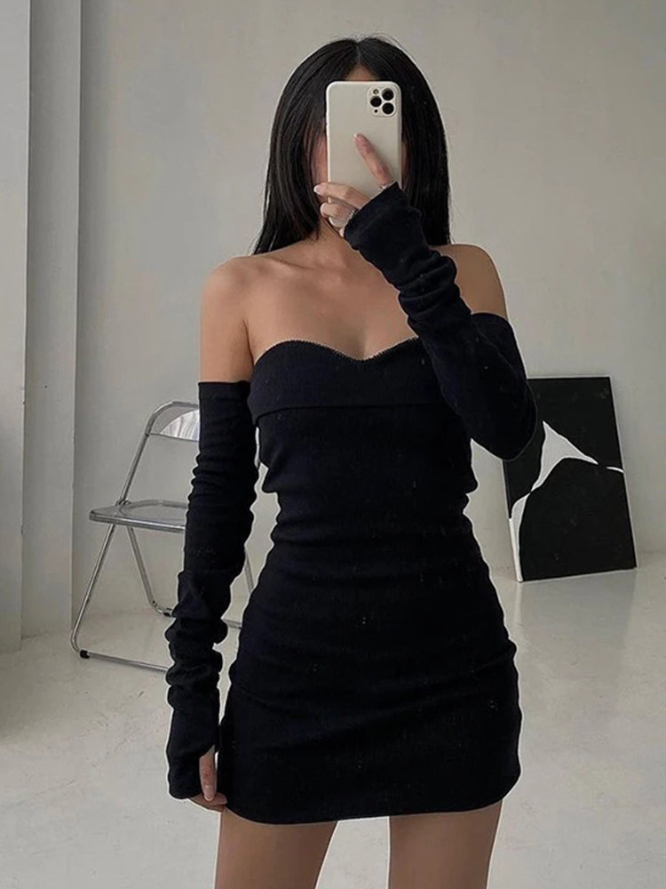 PEMPL·纯欲辣妹性感针织包臀短裙女慵懒感修身 弹力圆领连衣裙