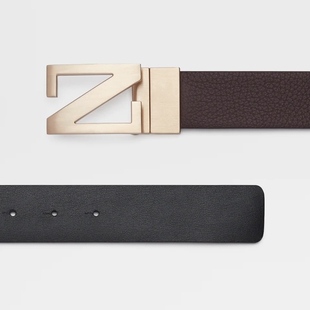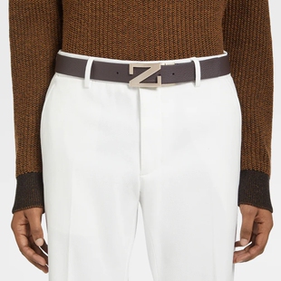 ZEGNA杰尼亚深棕色配黑色皮革商务通勤双面皮带3.5CM宽