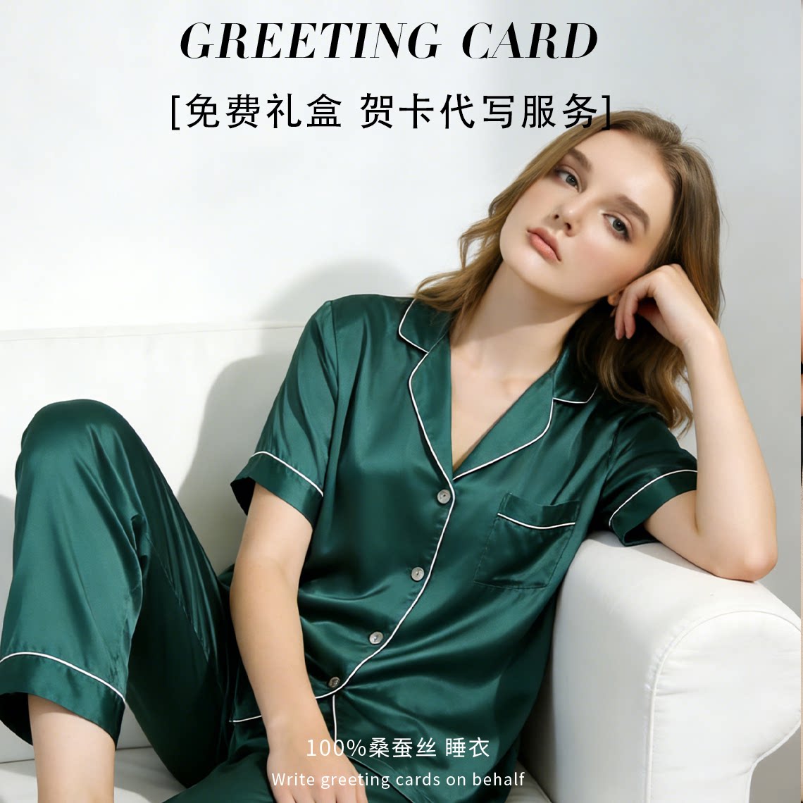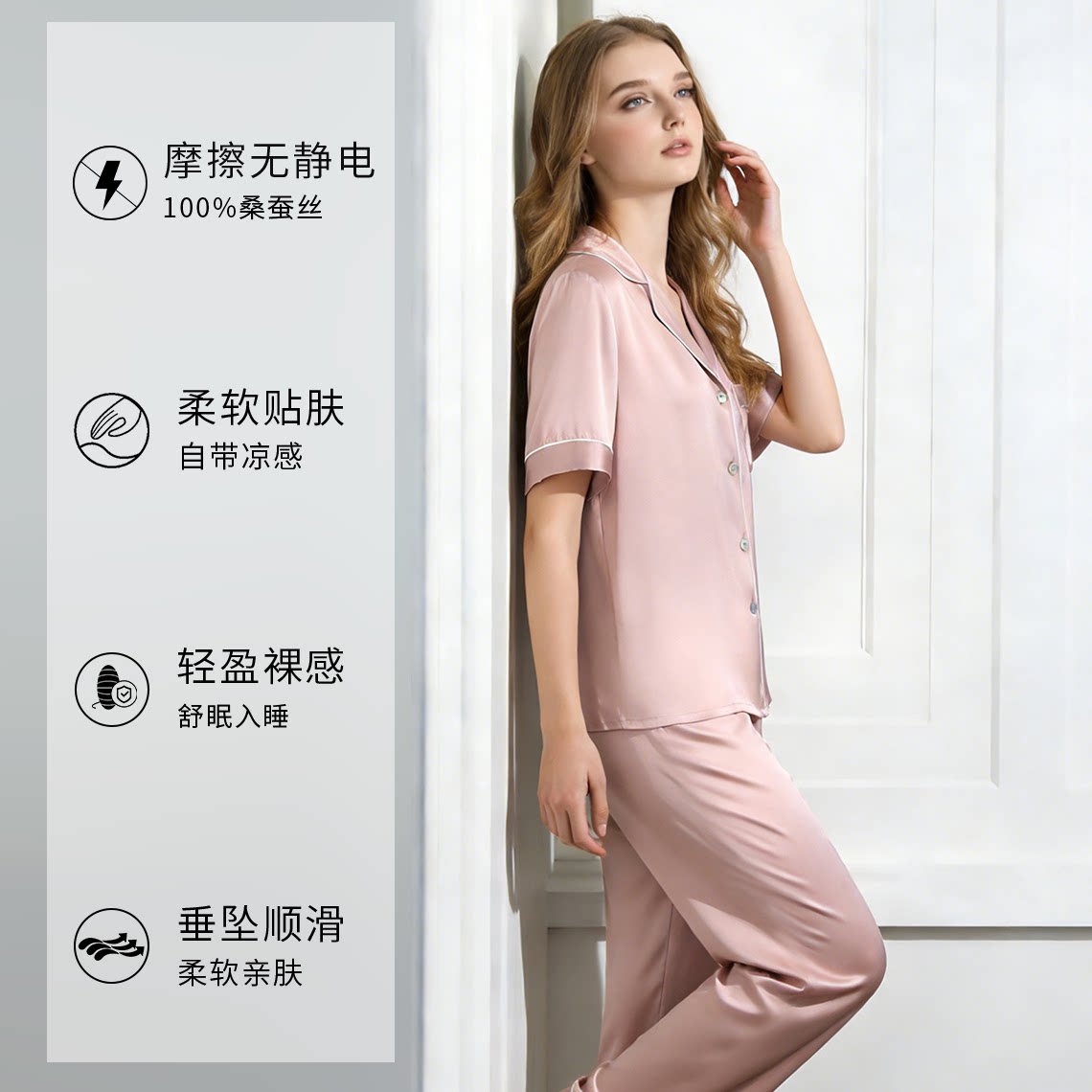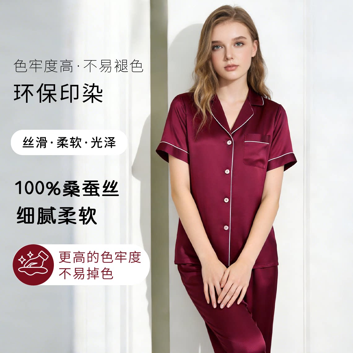 两件套100%桑蚕丝可外穿丝绸家居服 短袖 狄兰丝真丝睡衣女当季 薄款