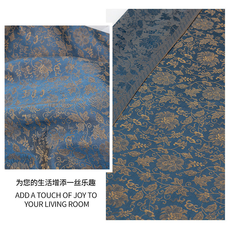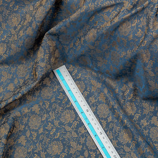 暖金蓝液态渐变水光欧根纱布料国风幻彩汉服网纱裙服装 设计师面料