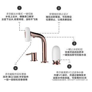 科勒希尔维双孔三孔美妍抽拉梳洗脸盆面盆卫生间冷热水龙头组合